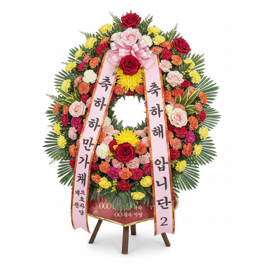 개업, 승진, 결혼 등 경사스러운 자리에 보내는 3단 축하화환입니다. 신선한 생화로 제작되며 전국 당일배송됩니다.