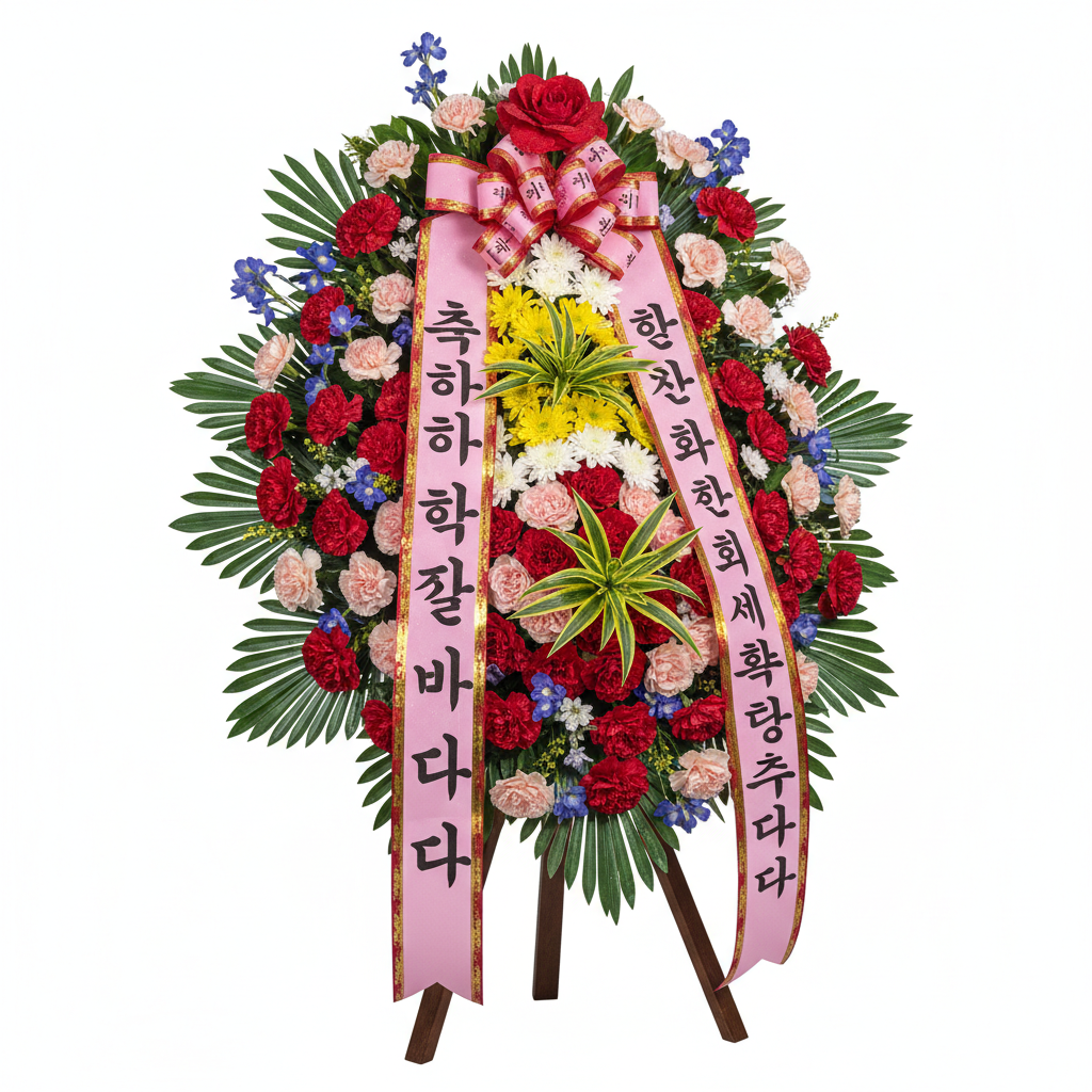 합리적인 가격의 2단 축하화환. 소규모 행사에 적합합니다.
