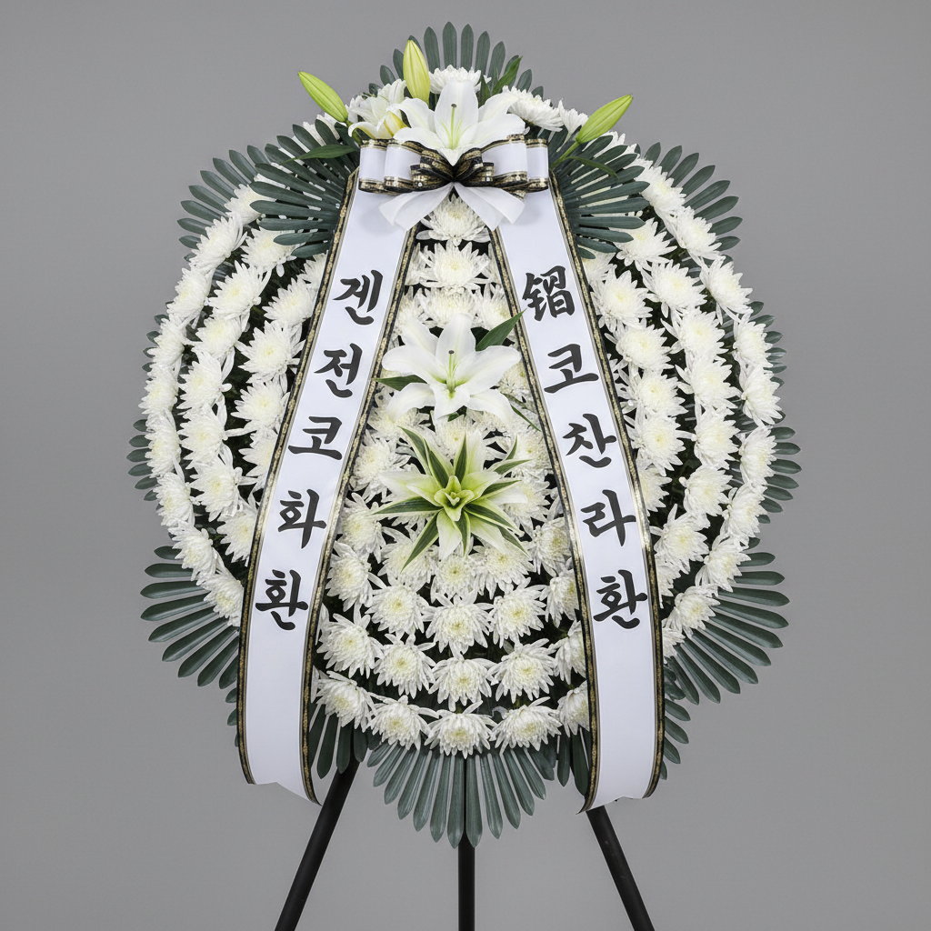 합리적인 2단 근조화환. 조문의 뜻을 정성껏 전합니다.