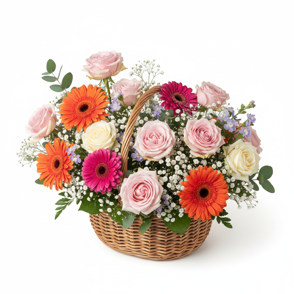 장미 꽃바구니 프리미엄